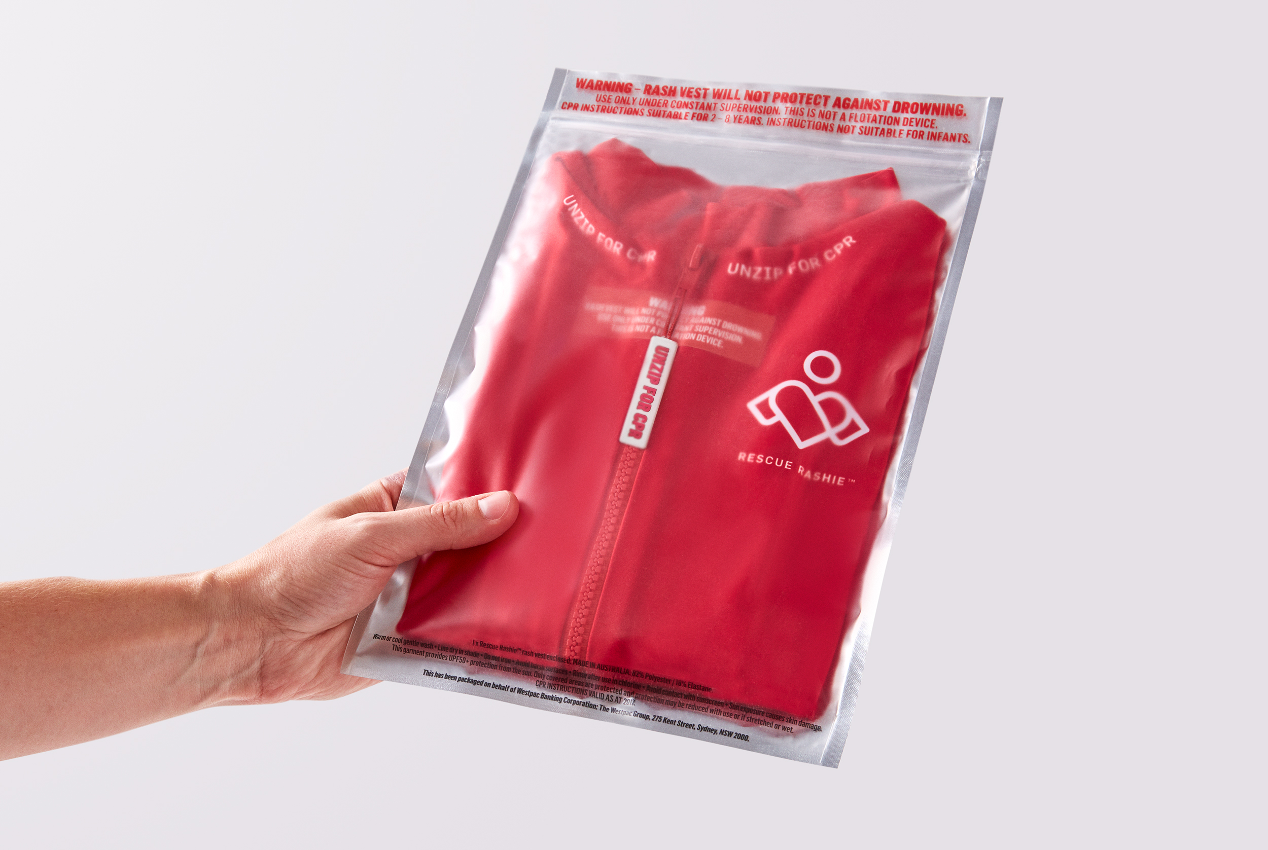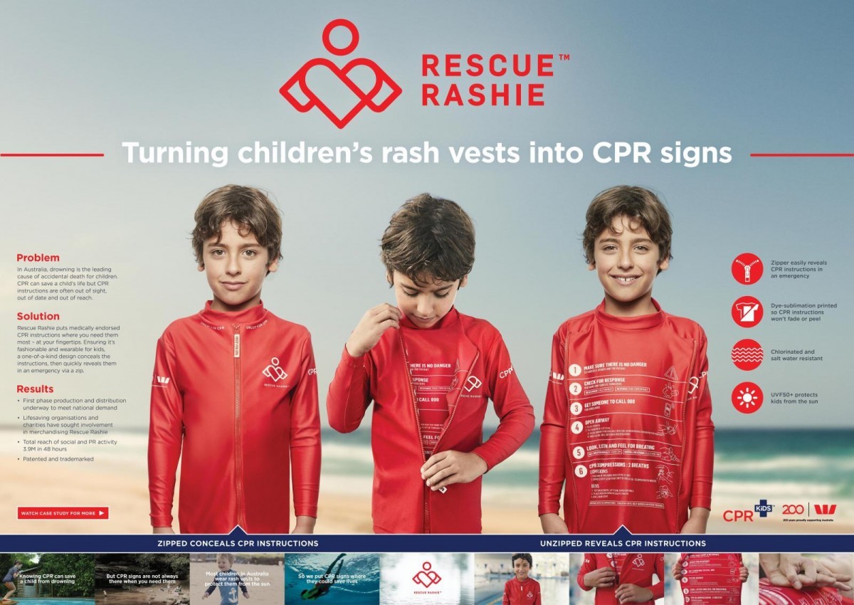 We integrated CPR instructions directly into swimwear, placing lifesaving information exactly where it is needed.